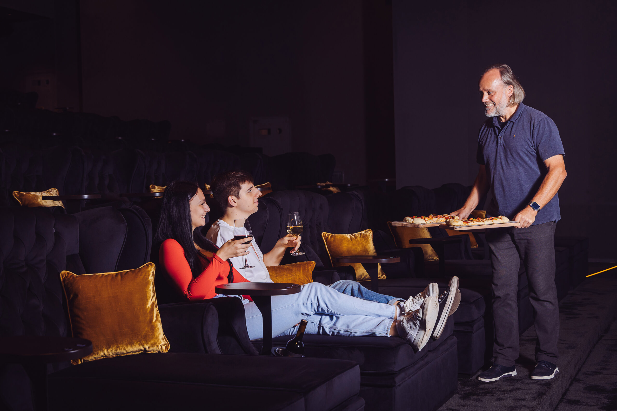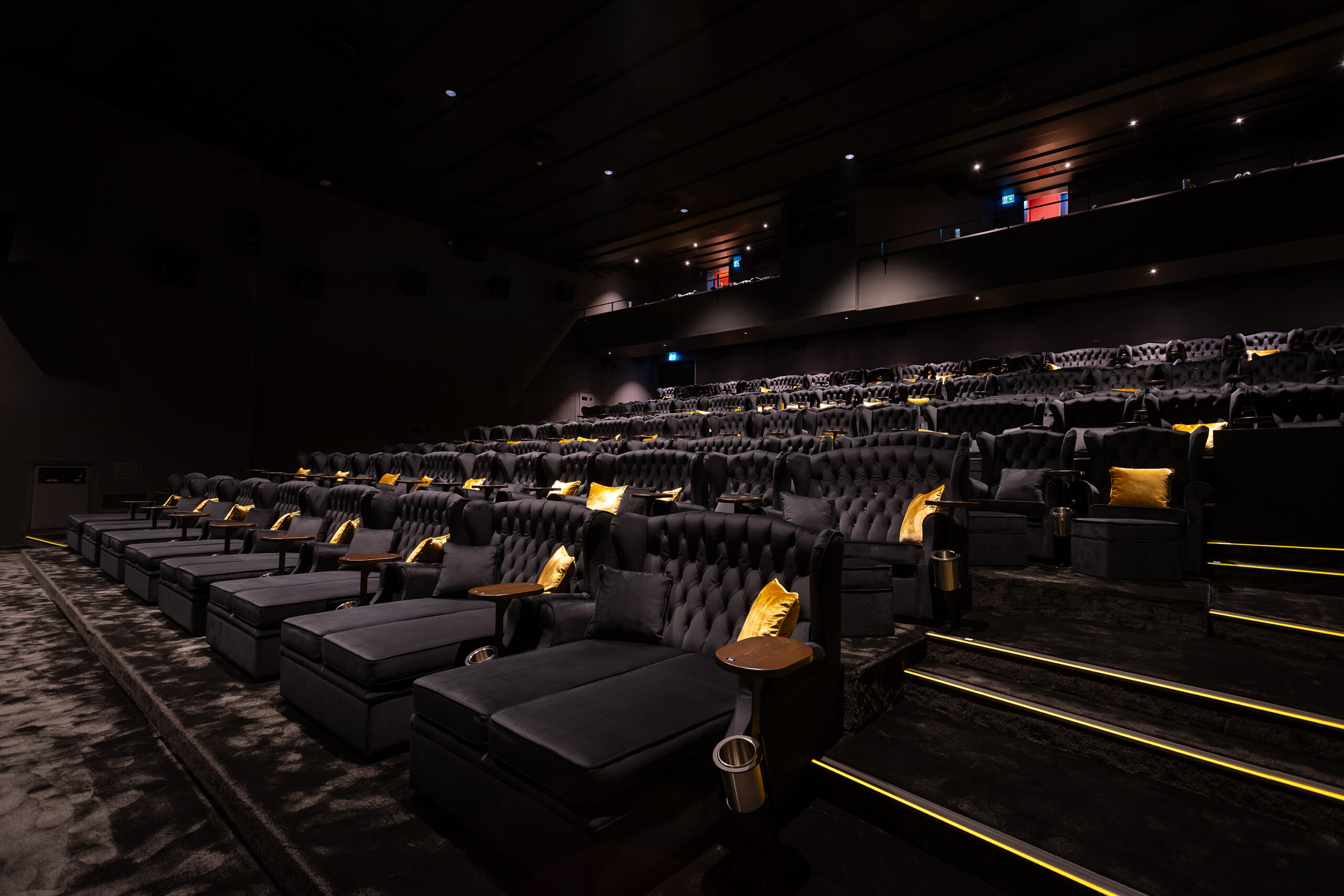 A front row of Rose 2-Seater Sofa Chaise-End installed at KinoKoni in Basel.