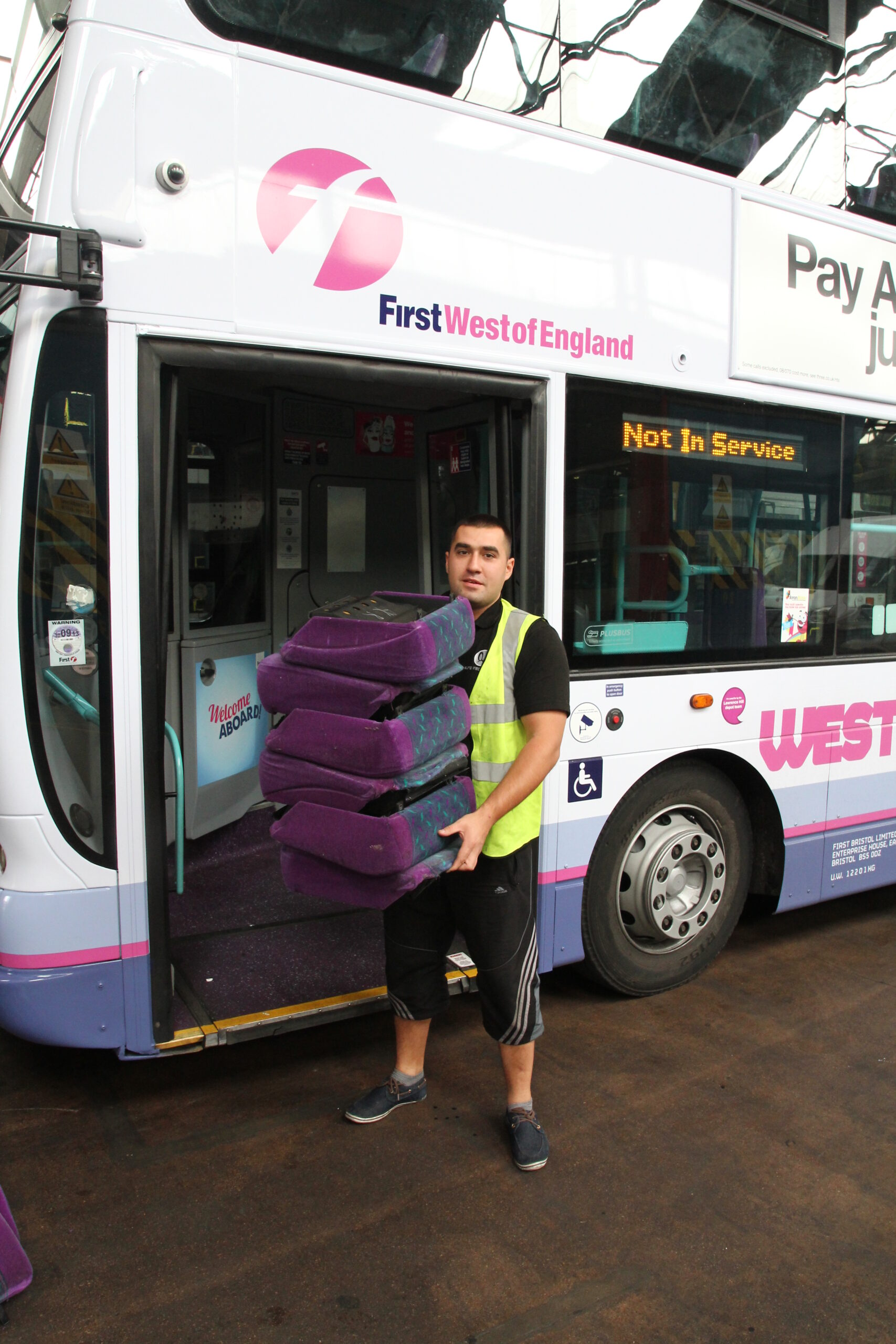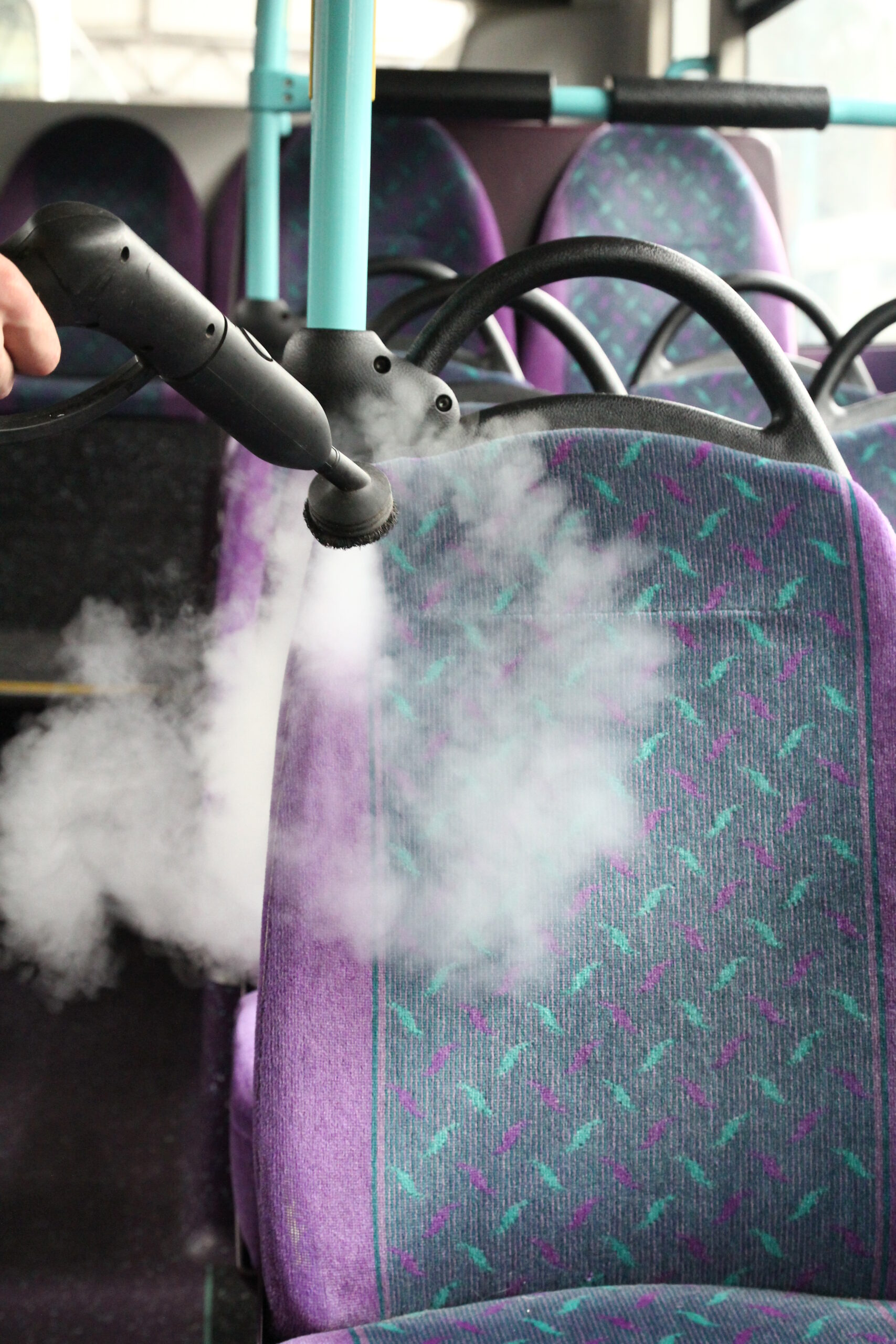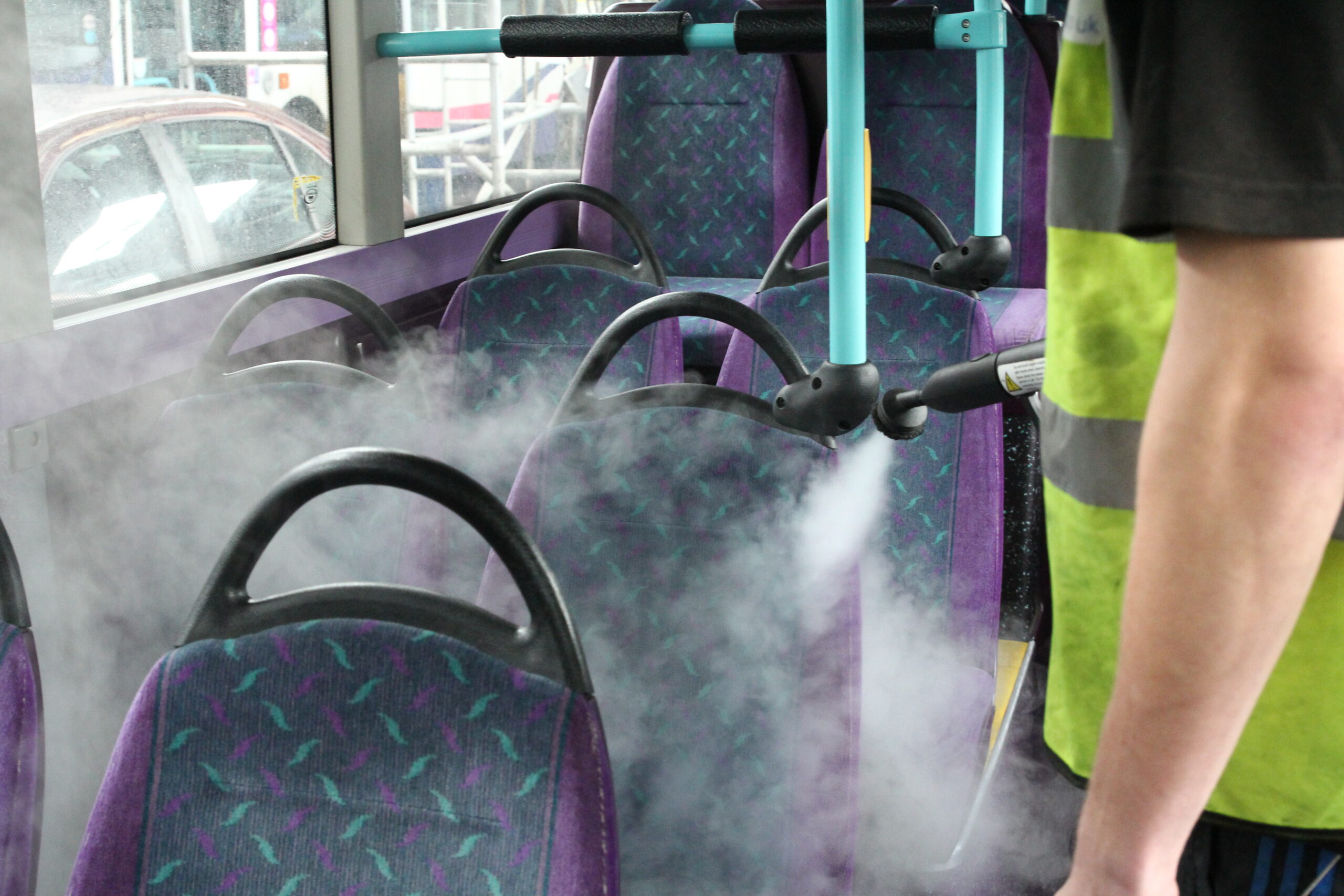 These buses were part of an extensive program that included over 200 vehicles that were changed from their well known Velour fabric to eLeather. The steaming is to fumigate the old fabric before our operatives started the works.