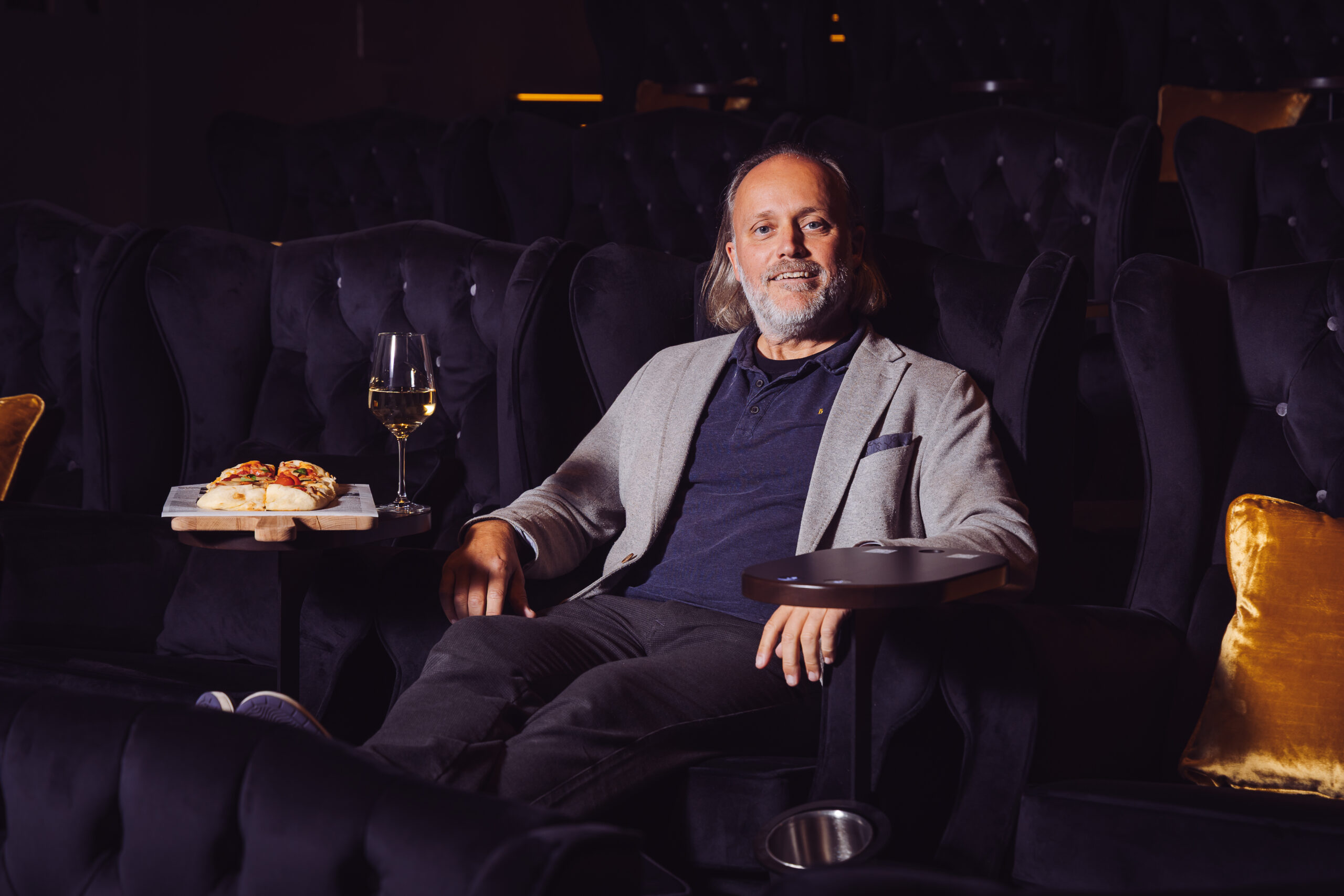Cinema owner Konrad enjoying the comfort of the Rose Armchair
